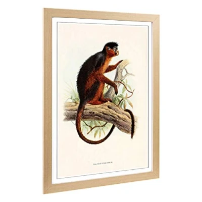 Big Box Art Framed Print of Vintage Joseph Wolf Colobus Monkey Design Wall Picture Home Decor for Kitchen, Living Room, Bedroom, Hallway, Oak, A2 / 24.5x18 Inch 62x45cm