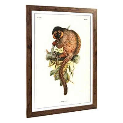 Big Box Art Framed Print of Vintage Joseph Wolf Common Brown Lemur Design Wall Picture Home Decor for Kitchen, Living Room, Bedroom, Hallway, Walnut, A2 / 24.5x18 Inch 62x45cm
