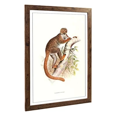 Big Box Art Framed Print of Vintage Joseph Wolf Woolly Lemur Design Wall Picture Home Decor for Kitchen, Living Room, Bedroom, Hallway, Walnut, A2 / 24.5x18 Inch 62x45cm