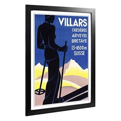 Big Box Art Framed Print of Vintage Travel Poster Villars 2 Design Wall Picture Home Decor for Kitchen, Living Room, Bedroom, Hallway, Black, A2 / 24.5x18 Inch 62x45cm