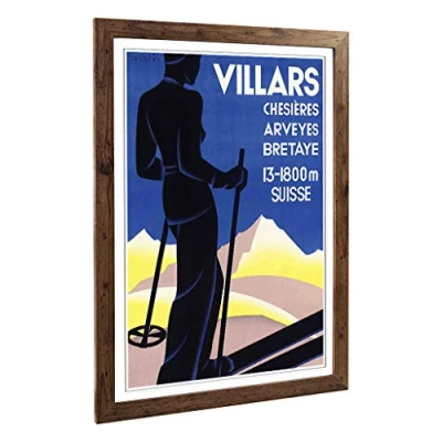 Big Box Art Framed Print of Vintage Travel Poster Villars 2 Design Wall Picture Home Decor for Kitchen, Living Room, Bedroom, Hallway, Walnut, A2 / 24.5x18 Inch 62x45cm
