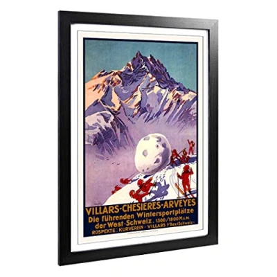 Big Box Art Framed Print of Vintage Travel Poster Villars Design Wall Picture Home Decor for Kitchen, Living, Dining Room, Bedroom, Hallway, Office, Black, A2 / 24.5x18 Inch 62x45cm