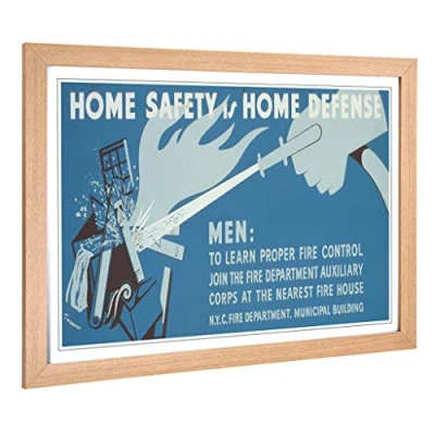 Big Box Art Framed Print of Vintage WPA Poster Defense Design Wall Picture Home Decor for Kitchen, Living Room, Bedroom, Hallway, Oak, A2 / 24.5x18 Inch 62x45cm