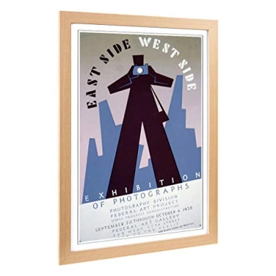 Big Box Art Framed Print of Vintage WPA Poster East West Side Design Wall Picture Home Decor for Kitchen, Living Room, Bedroom, Hallway, Oak, A2 / 24.5x18 Inch 62x45cm