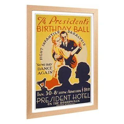 Big Box Art Framed Print of Vintage WPA Poster Presidents Birthday Ball Design Wall Picture Home Decor for Kitchen, Living Room, Bedroom, Hallway, Oak, A2 / 24.5x18 Inch 62x45cm