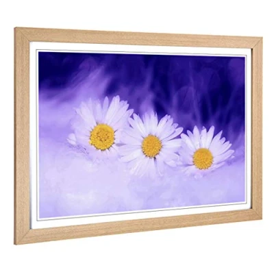 Big Box Art Framed Print of White Daisy Flower (5) Design Wall Picture Home Decor for Kitchen, Living, Dining Room, Lounge, Bedroom, Hallway, Office, Oak, A2 / 24.5x18 Inch 62x45cm