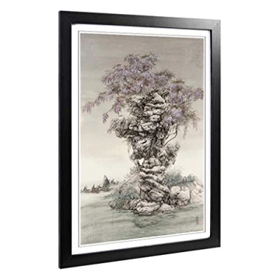 Big Box Art Framed Print of Yuan Yao Oriental Wisteria Design Wall Picture Home Decor for Kitchen, Living, Dining Room, Bedroom, Hallway, Office, Black, A2 / 24.5x18 Inch 62x45cm