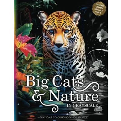 BIG CATS & NATURE: A Grayscale Coloring Book for Adults Teens