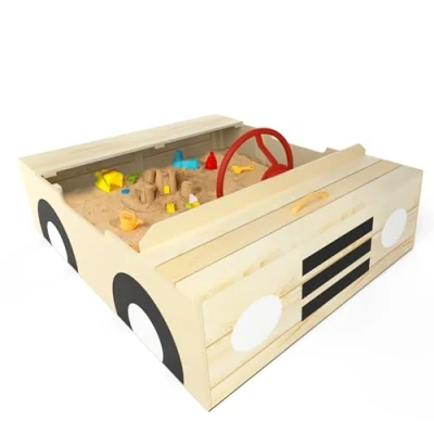 Big Game Hunters Car Wooden Sandpit with Weatherproof Cover, Secured Underlay and Steering Wheel