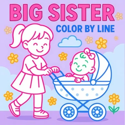 Big Sister Color by Line Coloring Book: a Heartwarming for New Sisters, Vivid Outlines to Celebrate Welcoming Baby Sibling