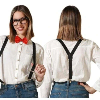 BigBuy Carnival Glasses Bow Tie Suspenders Set