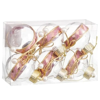 BigBuy Christmas Baubles Pink Transparent Gold Plastic Woven Ribbon 6 x cm (6 Units)