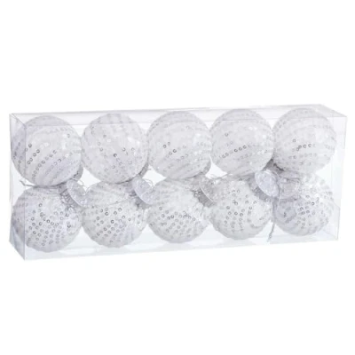 BigBuy Christmas Baubles White Silver Plastic Woven Sequins 6 x cm (10 Units)