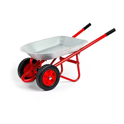 RED & SILVER CHILDRENS WHEELBARROW: Two-wheeled wheelbarrow with easy grip handles that ensure it doesn't tip over when in the garden; requires adult assembly; 41cm L x 40cm H x 84cm W; for 3 years + KIDS GARDENING GIFTS: Our red wheel barrow is the ideal gardening gift for green-fingered kids who love to plant flowers & veg; made from sturdy metal & has rubber wheels for the ultimate garden play GARDEN TOOLS SET: Our wheelbarrow has lots of space & an easy-to-clean tray after it has been packed with soil, sand or plants; pair with our kids gardening set, gloves & tools for the best experience SUSTAINABLE OUTDOOR TOYS: Our garden toys & equipment are made from premium quality, sustainably sourced materials & conform to EN71 Toy Safety Standards; the wheelbarrow requires adult assembly NATURE FUN: This colourful children's wheelbarrow allows kids to get outside into nature & to enjoy the great outdoors as they wheel things across the garden; great for developing kids motor skills, Manufacturer: Bigjigs Toys