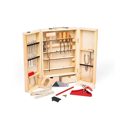 Bigjigs Toys Junior Kids Tool Set 28 Piece Kit with Real Hammer, Saws, Spanners, Screwdrivers, Quality Wooden Boys age 8 for DIY Projects