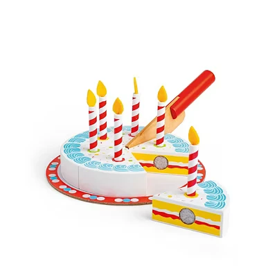 A delicious, colourful wooden Birthday Cake perfect for any special occasion! There are six generous slices, plus a serving knife that is perfectly shaped for little hands. A great addition to any play tea set. Age 3+ years. Made from high quality, responsibly sourced materials., Manufacturer: Bigjigs Toys