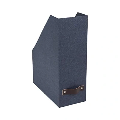 STYLISH & PRACTICAL: Thanks to its special paper coating, the file storage impresses with its blue linen look. The leather handle also gives it elegance and makes it easier to move around. STABLE DESIGN: The folder organiser has a stable design so that it always remains secure on the desk or shelf and keeps things tidy quickly and easily. EASY TO COMBINE: The file organiser storage is suitable for storing newspapers, magazines, files etc. within easy reach. Moreover, it can be combined with other colours and articles. SUSTAINABLE MATERIALS: The paper storage box is made of solid, recycled fibreboard with a paper coating of ECF pulp from exemplary and sustainably managed forests. PRACTICAL ORGANISER: With its dimensions of 25.0 cm x 11.5 cm x 32.2 cm, the A4 desk file organiser offers storage space without taking up much room on the desk or shelf.