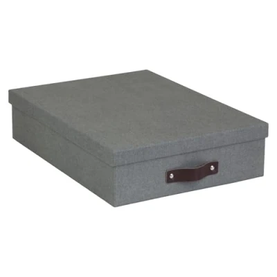 Bigso Box of Sweden Document for A4 paper, Brochures and Notes with Lid Leather Handle Fibreboard Paper Storage Grey