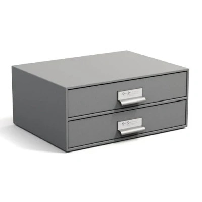 Bigso Box of Sweden Drawer Storage for Documents and Office Supplies Desk Organiser with 2 Drawers Fibreboard Paper Filing System Grey