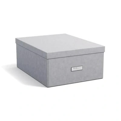 Bigso Box of Sweden KATRIN Large Storage with Lid Sturdy Organiser Made Fibreboard and Paper in Linen Look Practical Folding Label Frame Light Grey