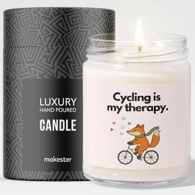 Cycling is my therapy. Quality Over Everything - We've scoured every nook, cranny, and soybean field to get the top-shelf stuff for our candle - the kind of wax and essential oils that would make a candle connoisseur weep with joy. Fresh Fragrance - A captivating aroma made from natural essential oils and a blend of sugared almond, vanilla, and white musk. It's (probably) the best-smelling candle in the world. Great Size, Unforgettable Glow - 220g of high-quality soy wax ensures that this candle will keep on going and going. Enjoy over 40+ hours of uninterrupted candle pleasure.
