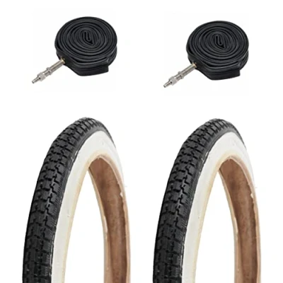 Bike Tyres 14" x 1 3/8" Whitewall Traditional Retro Old School Kids & Inner Tubes (Woods valve)