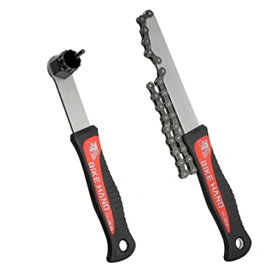 A HANDY KIT: This set includes 2 tools with handles, eliminating the need for additional tools. Use them for installing and removing Shimano, SRAM, and center lock-type disc brake rotor lockrings, as well as other compatible cassettes. For more details, please refer to the video in the listing. COMPATIBILITY: Suitable for all Shimano, SRAM, and other compatible cassettes commonly found on MTB, road, hybrid, and gravel touring bikes. Compatible with 7, 8, 9, 10, and 11-speed cassettes. HEAT-TREATED: Constructed from durable heat-treated steel to prevent rounding off through years of use. RUBBER-COATED: Features a rubber-coated handle for a secure grip, providing better leverage during use. The chain whip tool measures 11 inches in length, while the lockring tool measures 9 inches. ORDER NOW, WORRY-FREE! We're so confident about the quality of our product that we can provide a lifetime warranty! Made in Taiwan.