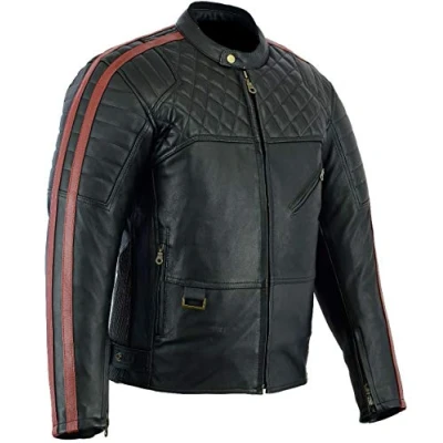 Bikers Gear Australia Limited Red Baron Premium Qulaity Soft Analine Leather Motorcycle Jacket CE Removable Armour, Black Oxblood, Size S