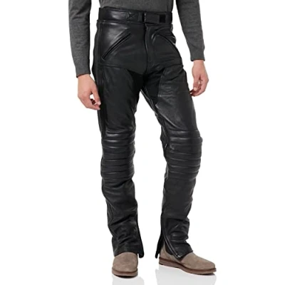 Bikers Gear Australia Men's soft premium leather motorcycle pants, LT1004, Black, EU(44L), UK(34L)