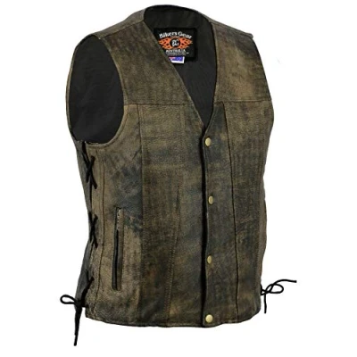 Bikers Gear Australia Premium 1.3mm Soft Cowhide Harley Style Leather Vest with Adjustable Lace Sides and Pockets, Distressed Brown, Size S