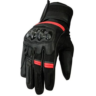Premium leather short motorcycle glove Hard armour for knuckle protection Easy fit wrist band