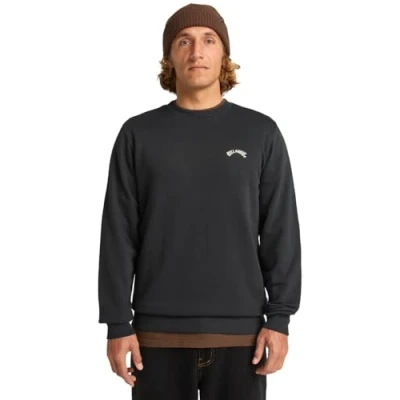 * The Billabong Arch Crew Sweater is a classic crew neck sweater build, with details on the left of the chest * Black poly-cotton construction with white details * Embroidered chest detail * Ribbed cuff and hem * Materials: 55% Cotton / 25% Recycled Cotton / 20% Recycled Polyester * Fit: Regular * Model is 5'10" tall and of a slim build wearing Medium