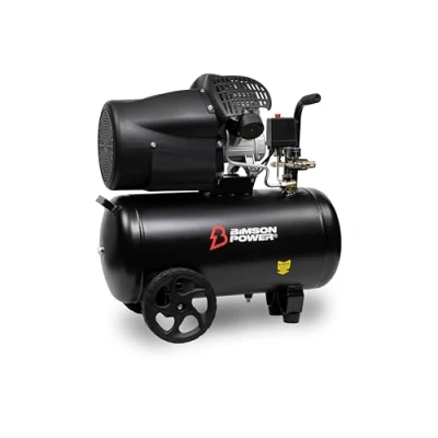 Longer Tool Run Time with 50L Air Tank: The large 50L capacity ensures fewer interruptions for refills, letting you work smoothly on big projects and maintain a steady workflow. Rapid Power for Tough Jobs: With a robust 2200 W, 3.0 HP motor, this compressor fills quickly and delivers consistent, reliable power for demanding tasks, reducing downtime and boosting productivity. Increased Efficiency with Twin Cylinders: The dual-cylinder design provides higher air output, giving you faster and more dependable performance for heavy-duty applications, so you can get more done. Optimal Tool Performance with High Flow Rate: Achieve efficient operation of various pneumatic tools with a 392 L/min flow rate and 116 PSI pressure, ensuring maximum effectiveness for every job. Effortless Mobility: Equipped with durable built-in wheels, this compressor is easy to move and transport, making it perfect for job sites or tasks that require flexibility and on-the-go convenience., Weight: 94.79877266 pounds, Manufacturer: Bimson Power
