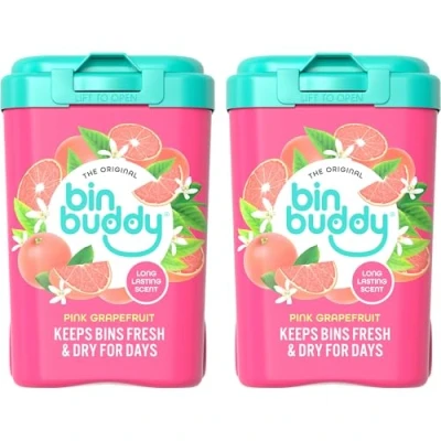 KEEP BINS FRESH AND CLEAN — stop and smell the roses, not the contents of your bin! Bin Buddy Fresh Pink Grapefruit (Pack of 2) bin deodoriser can help remove those nasty smells from your bin, leaving a pleasant citrusy fragrance behind SOAK UP THE MESS — Bin Buddy powder helps to soak up the mess by absorbing the runny liquids and smelly condensation that gathers at the bottom of your wheelie bins and bin bags for up to 42 applications! CONTAINS AN ODOUR ELIMINATOR — don't just mask smells, eliminate them; our bin freshener removes the nasty smells in your bins and leaves our refreshing citrus fragrance in its wake – it’s the zest! LEAVES BINS SMELLING GREAT — Bin Buddy keeps bins fresh and clean for days - when used as required, it helps reduce the frequency of use of bin bags and the number of trips to the curb to dispatch your rubbish IDEAL FOR INDOOR AND OUTDOOR BINS — Bin Buddy Pink Grapefruit deodorising powder can be used in both indoor and outdoor bins; simply shake some powder into the bin every time you use it to keep it smelling great and get the most out of your bin bags!