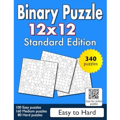 Binary Puzzle 12x12 Standard Edition Easy to Hard: 100 160 Medium 80 Hard Puzzles (Binary Series)