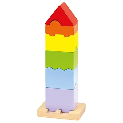 TRADITIONAL TOY - Wooden stacker toy. A stacking tower is made of 6 wooden peices in different colours and a wooden base board. SKILLS DEVELOPMENT - Wooden stacking tower helps to encourage both colour recognition and hand-eye coordination. FUN TOY - Play, stack, destroy and play again! Wooden stacker toy is an ideal present for boys and girls. Size: 7 x 9 x 23 cm.