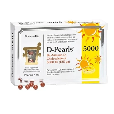 AmazonBest form of Vitamin D: This product contains the most active form of Vitamin D with pure and organic cold-pressed olive oil for better absorption by the body Best in Class: D-Pearls from Pharma Nord are preferred by scientist over other vitamin supplements due to the optimized formula of the product. In fact, this product was selected for a big English immune support study with 6200 people Best Absorption: D-Pearls Vitamin D 5000 IU are EASY TO SWALLOW. The size makes our capsules the ideal choice for kids and adults Best packaging: Packed in air-tight blisters ensuring that every capsule is protected from air-induced degradation and bacteria Gold Standard: D-Pearls are manufactured in Denmark to the highest pharmaceutical standards with non-GMO, gluten free ingredients. Potency and purity are tested and verified upon batch release