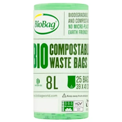 100% Compostable & Certified. Made from Mater-Bi – a plant-based bioplastic derived from corn starch, PBAT, and vegetable oils. Fully certified to EN13432, OK Compost HOME, BPI, and CMA standards for home and industrial composting. Perfect Fit for 5–10L Kitchen Caddies. Designed to fit standard food waste bins used in UK homes. Each 8L liner measures approx. 400 × 380 mm, ideal for countertop compost caddies and small kitchen bins. Leak-Resistant & Odour-Reducing. Features a star-sealed base to prevent messy leaks and spills. The breathable material allows moisture to evaporate, reducing unpleasant smells in your kitchen. Eco-Friendly Alternative to Plastic Free from microplastics, polyethylene, and GMOs. Breaks down naturally without leaving toxic residue – better for your home and the planet.