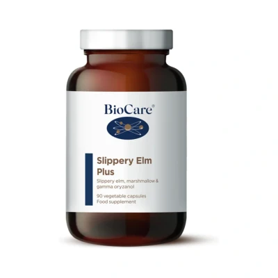 BioCare's Slippery Elm Plus contains a blend of slippery elm, marshmallow root and gamma oryzanol to help soothe and support gastrointestinal health.