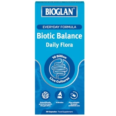 Bioglan Biotic Balance Daily Flora CFU 10 Billion Live Cultures 6 Strains 30 Capsules