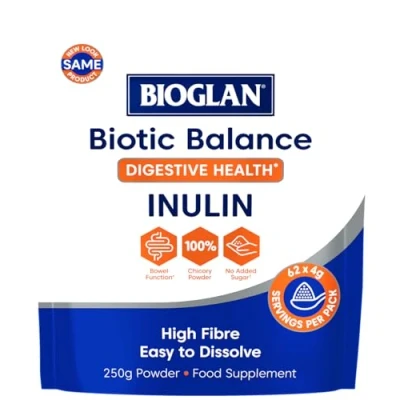 100% Pure Inulin Powder: Bioglan Inulin is made from naturally sourced chicory root, offering a clean and effective fibre supplement. High in Fibre: A rich source of water-soluble fibre to support your daily dietary needs. Supports Digestive Health: Promotes digestive wellbeing by providing gut bacteria with the energy needed to thrive. Improves Bowel Function: Contributes to normal bowel function for a healthier digestive system. Versatile & Easy to Use: Easily dissolves in water, juice, smoothies, or can be added to cereals, baking, and more, seamlessly fitting into your diet.