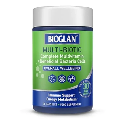 Bioglan Multi Biotic Capsules, Daily Multivitamin with 2.5 Billion Beneficial Bacteria, Immune Support, Energy and Fatigue Support