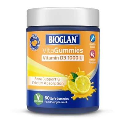 High-Potency Vitamin D3: Each Bioglan Vitamin D3 VitaGummy delivers 1000IU (25 µg) of Vitamin D3 to help maintain optimal levels, especially during winter months. Supports Bone & Teeth Health: Aids in calcium absorption to promote the maintenance of strong bones and teeth. Enhances Muscle Function: Contributes to the maintenance of normal muscle function, essential for an active lifestyle. Boosts Immune System: Helps support the normal function of the immune system for overall wellbeing. Vegetarian-Friendly & Delicious: Made from pectin and available in a tasty, easy-to-take gummy form—no water or tablets required!