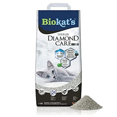 ACTIVATED CARBON: The included activated carbon, made using a sustainable raw material, effectively absorbs fluid and odours ALOE VERA: Aloe vera additive provides gentle and natural paw care for cats CLUMP FORMING: The fine grain is extremely efficient and forms extra-flat clumps, making it easier to clean litter trays STORAGE: Keep the paper bag closed and always store Biokatʼs cat litter with bentonite in a dry place CONTENT: 1 paper bag 10 litres Biokatʼs Diamond Care Classic litter with fine grains with fragrance-free formula - Made in Germany