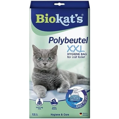 HYGIENIC: Robust plastic bags are ideal for lining cat litter trays and allow used litter to be disposed of hygienically QUICK AND EASY: Simply line the litter tray with the bag, fill with litter and remove the entire bag once the litter needs to be changed. It’s that simple! SIZE: Thanks to the XXL size, these hygiene bags are a perfect fit for all standard litter trays DIMENSIONS: The bags measure 55 x 45 x 12 cm CONTENT: 1 pack of 12 Biokatʼs Polybags XXL for lining litter trays