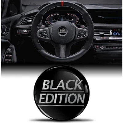 Biomar Labs 3D Silicone Sticker Compatible with BMW 36131181082 Emblem Steering Wheel 45 mm Badge Accessories Parts Decals Decoration Black V 10