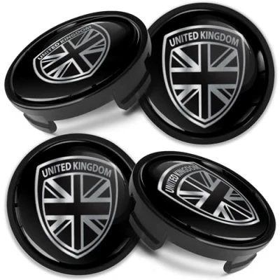 Biomar Labs 4 x 54 mm Wheel Centre Alloy Hub Center Caps Compatible with Ford Hubcaps Rim Cover UK Flag Union Jack Silver Black CF 1
