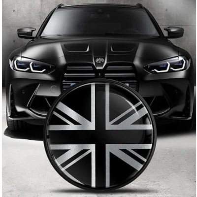 Biomar Labs Front Hood Trunk Tuning Badge 82 mm Compatible with BMW Emblem 51148132375 UK Flag Silver EO 21