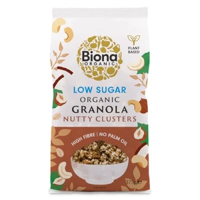 🥣LONGING FOR DELICIOUSLY LOW-SUGAR GRANOLA OPTIONS? Try our new low-sugar nutty clusters! We’ve combined creamy cashews with earthy hazelnuts, refreshing coconut shavings and golden toasted oats, to create a satisfying bite that is filled with fibre. ✨THE PERFECT START TO YOUR DAY. These nutty clusters are naturally sweetened with a subtle touch of tapioca syrup. Simply pour over your milk of choice or crumble atop your morning yoghurt for the perfect start to your day. ♻️SUSTAINABLE AND ETHICAL, FROM FARM TO FORK. Every step of the production process is carefully managed to ensure nothing but love and mother nature go into Biona Organic foods. All our ingredients are of the highest standard, completely natural and suitable for vegetarians (and often vegans too). 🌱 A HEALTHIER FUTURE. Built on an unwavering commitment to 100% organic, ethically and sustainably sourced food. Biona Organic began life on a kitchen table in London 30 years ago and is now bringing more than 400 organic products to lovers of good food. 🧑🌾 FREE FROM CHEMICAL PESTICIDES, HERBICIDES AND NEVER GMO. Healthy food has its roots in healthy soil. Whatever the crop, our farmers never, ever use chemical pesticides and herbicides or grow genetically modified crops.
