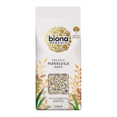Biona Organic Porridge Oats, 500 g Organically Grown Breakfast Oats High Fibre Sustainable 100% Recyclable Paper Packaging For Cooking, or Baking